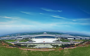重慶國際博覽中心整體呈蝴蝶造型。其場館室內(nèi)展覽面積20萬平米,共16個全平層無柱式展廳,單個展廳使用面積1.15